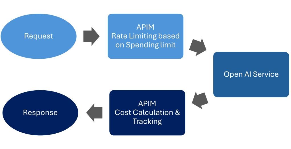 The Outbound Response Policy, captures the total amount of Tokens used and the model, calculates the cost and decrements the amount of spend remaining.